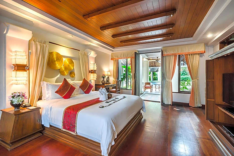 Located on the 3rd floor of a building surrounded by tropical gardens, this Royal Suite with Garden View offers a 106-sqm living space and an private bathroom fitted with a hot tub. Guests will also find another hot tub at the private outdoor terrace.